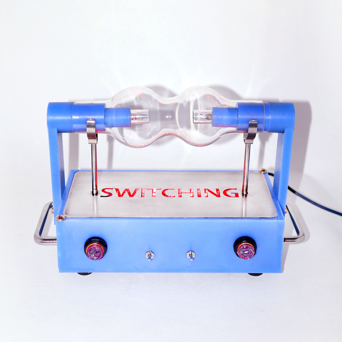 스위치가 On/Off를 의미함과 다르게, 스위칭이란 적절한 경로를 선택하는 과정을 의미합니다. 현실의 캐릭터와 부캐릭터를 오고가는 저희의 작업 주제와도 맞닿아 있습니다. 연결된 두개의 전구는 우리가 행해야하는 모습과 하고자하는 가치관을 담은 두개의 세계관이 맞닿은 형태입니다. 둘인듯 하나, 하나인듯 둘인 전구와 같이 자신에게 내재된 또다른 자아와의 연결을 떠올리며 이러한 두가지 모습을 수없이 ‘스위칭’ 해야하는 예술가로서 저희의 모습을 담고 있습니다.