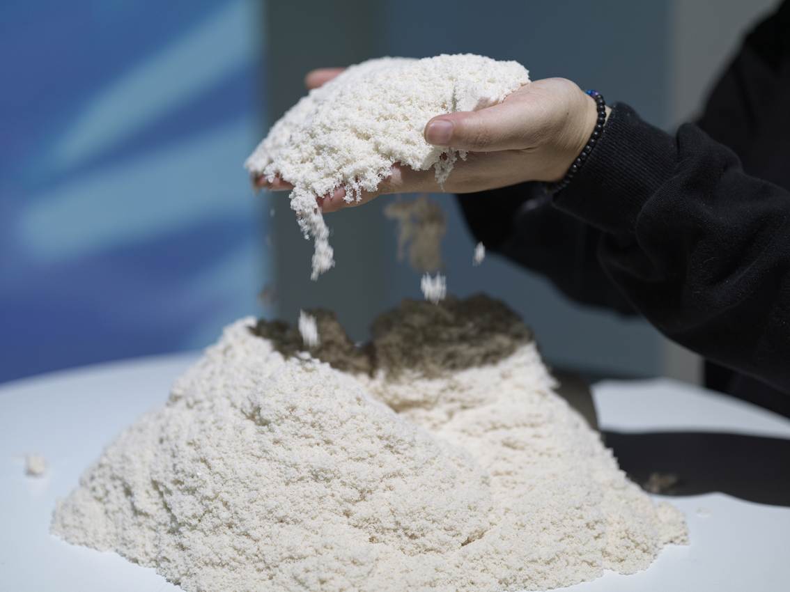 ‘Find Your Wave’ 전에서는 최초의 거울인 물의 표면을 통해 가상과 현실의 경계는 무너지며 실제와 가상 사이에서 새로운 감각으로 ‘나’를 인식하게 된다. 내가 나를 인식하는데 가장 중요한 요소인 ‘얼굴’을 비춰보고 만져보고 다시 바라보며 투명한 조각으로 이루어진 몸을 통해 나를 다시 생각해 본다. 나 조차도 나를 모르는 이해할 수 없는 것들 사이에서 계속해서 질문을 듣고 생각하다 보면 ‘아, 그러네 나는 누구였더라?’ ‘타인의 시선으로 비춰지는 내가 아닌 내가 바라보는 나는 누구지?’라는 생각의 씨앗이 내면에서 발생하게 된다.