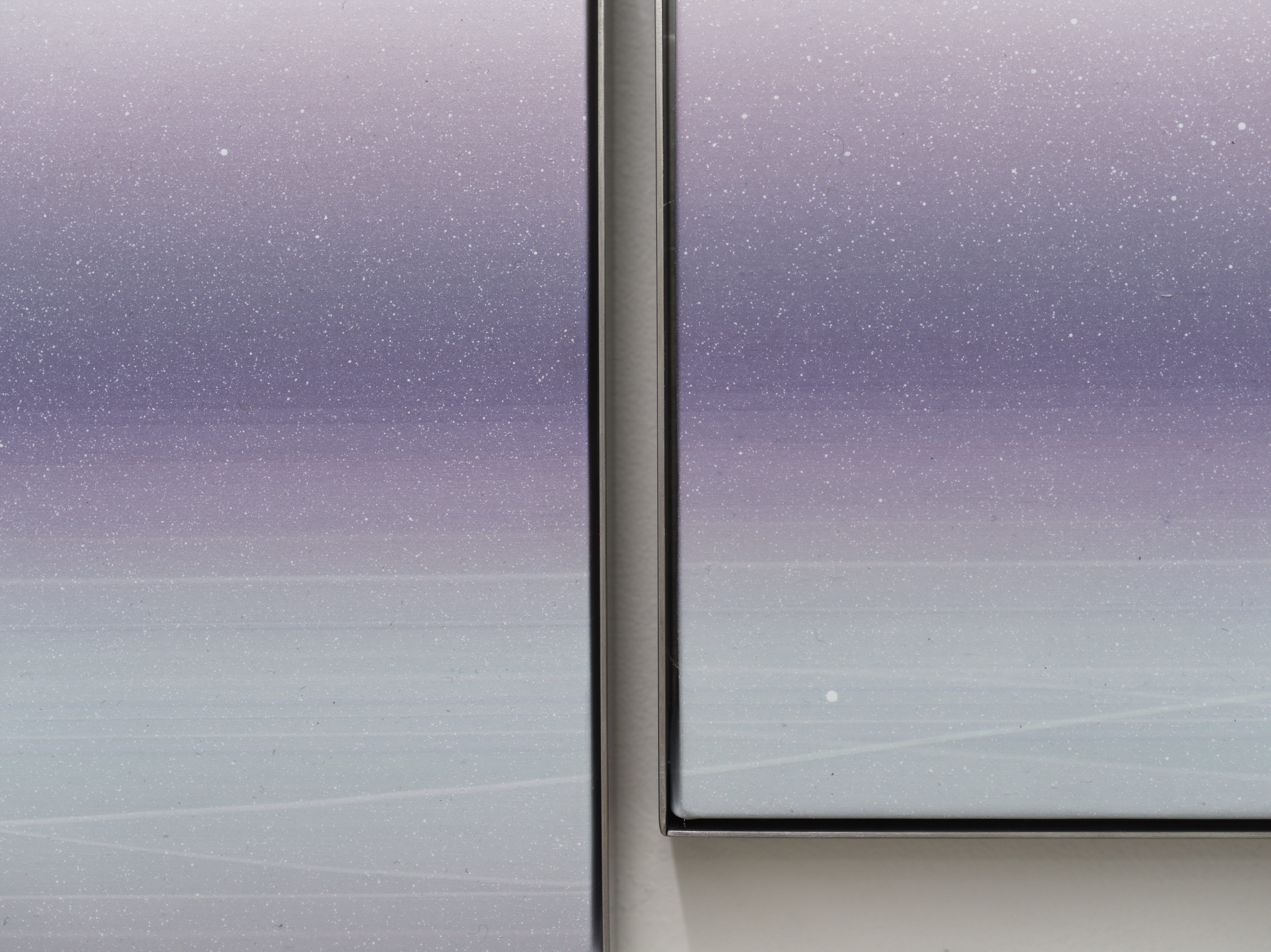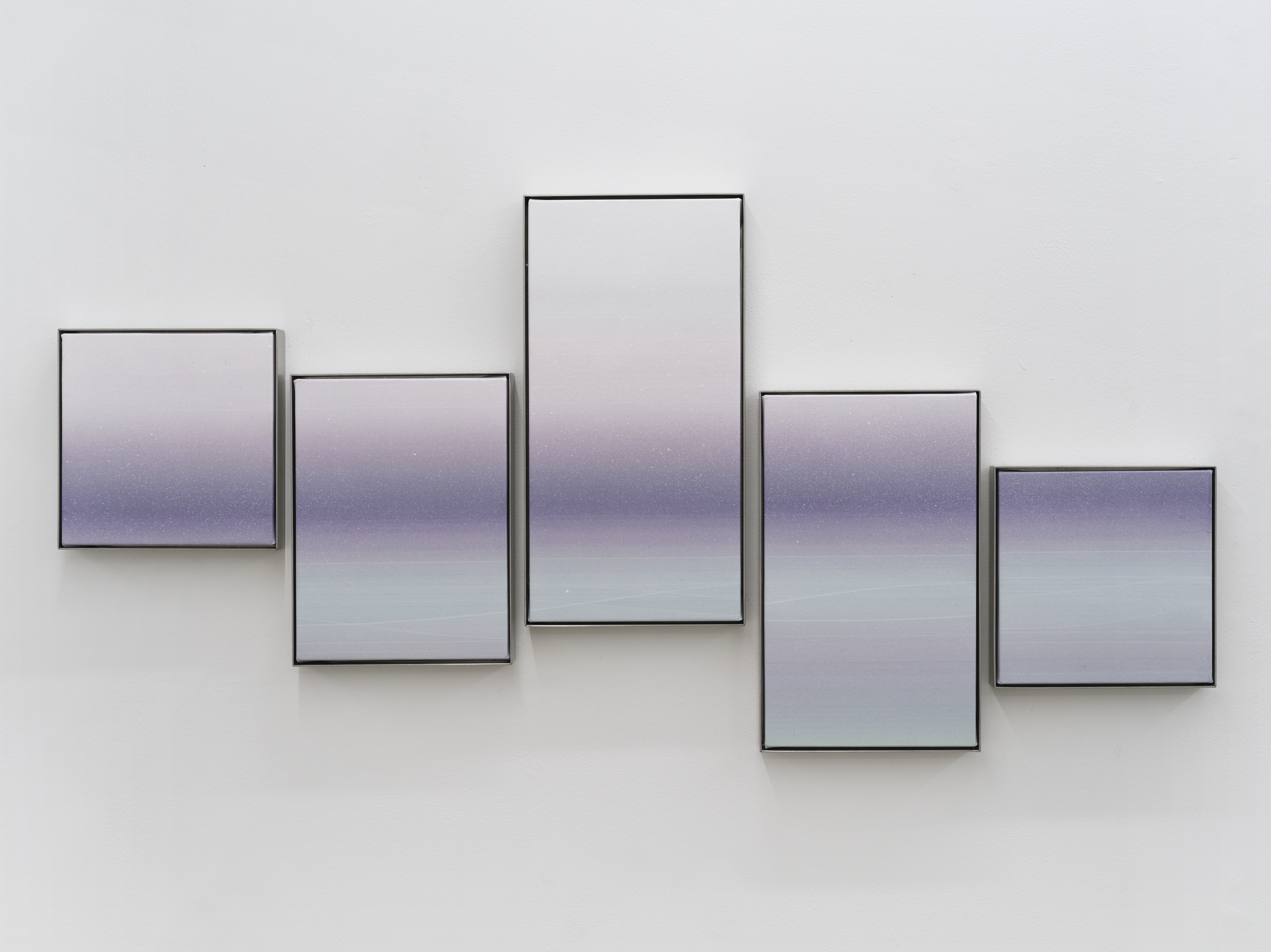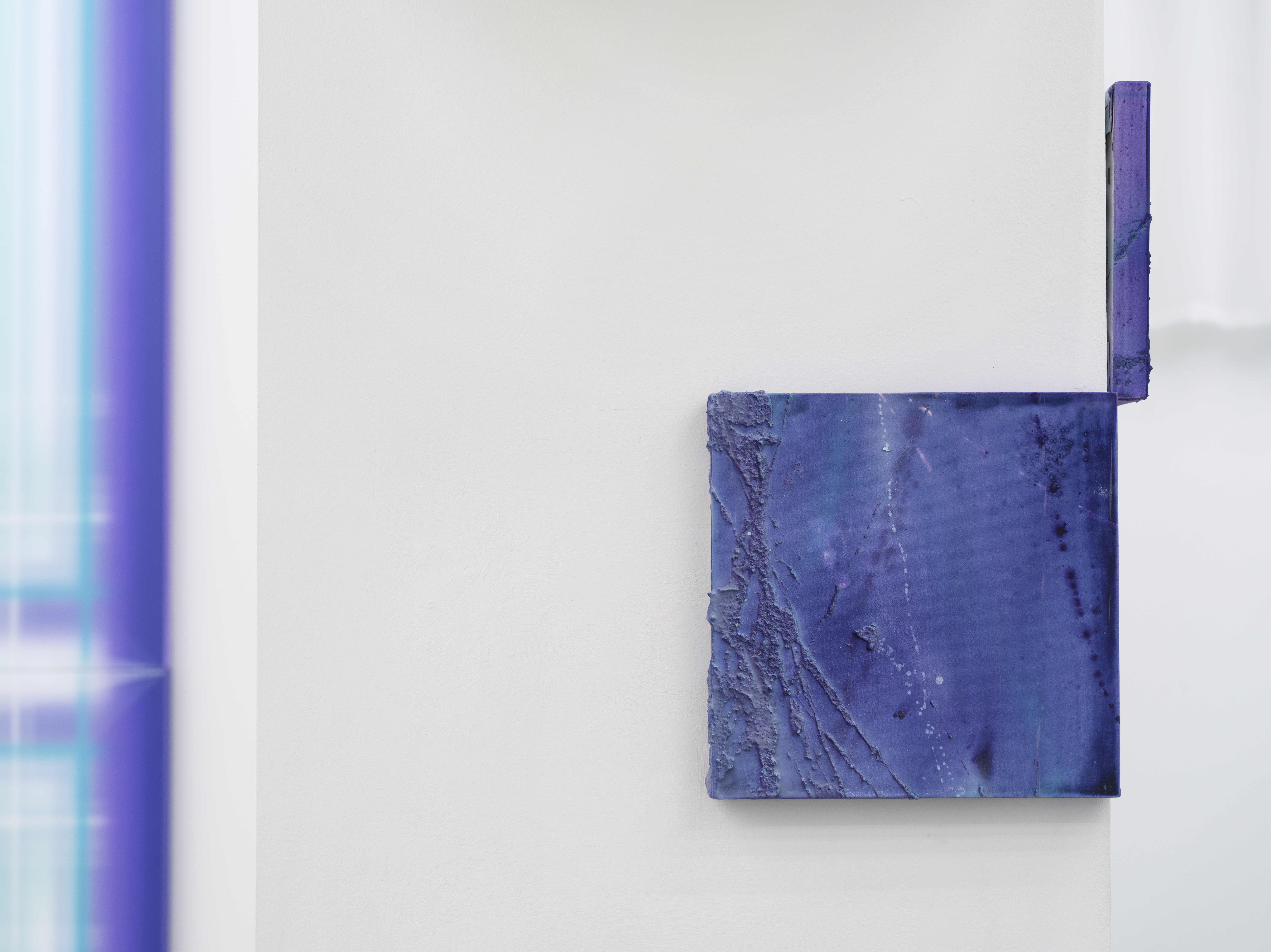 염기남의 작업에서 닿을 듯 말 듯 교차하는 선들은 “빛과 물질이 만나 생겨나는 미묘한 파동2”이 일으킨 순간의 감정들, 기억들, 그 너머의 시간들이 쌓이고 지워지기를 반복하며 새겨진 것이라고 할 수 있다. 실제로 작업 과정에서 스퀴지로 밀어내고 덮기를 반복하는데, 염기남은 이 과정에서 “마치 밀물과 썰물이 서로 교차하며 형성된 패턴처럼, 물질의 표면 위에 새로운 결을 남긴다3”라고 말했다.