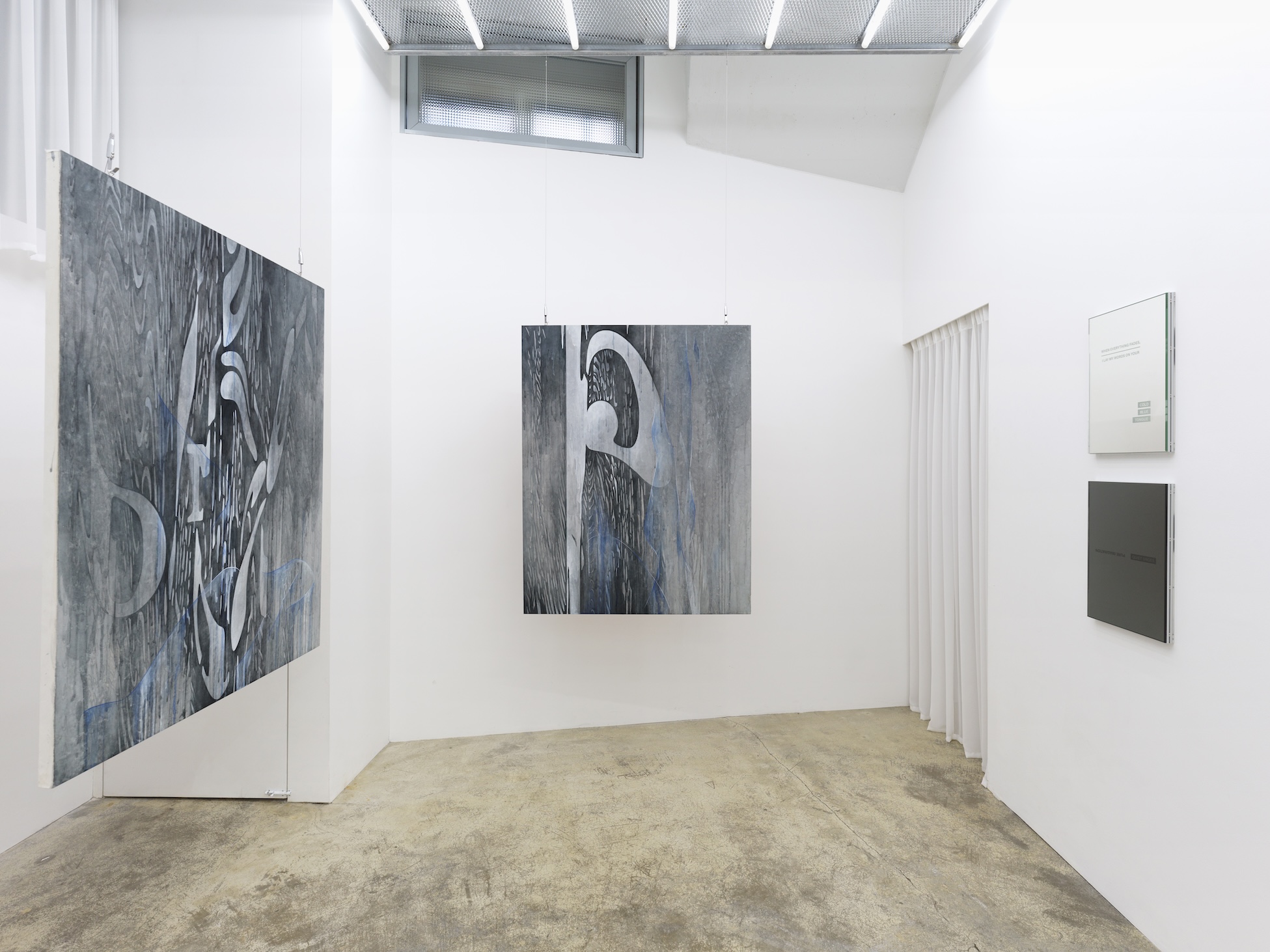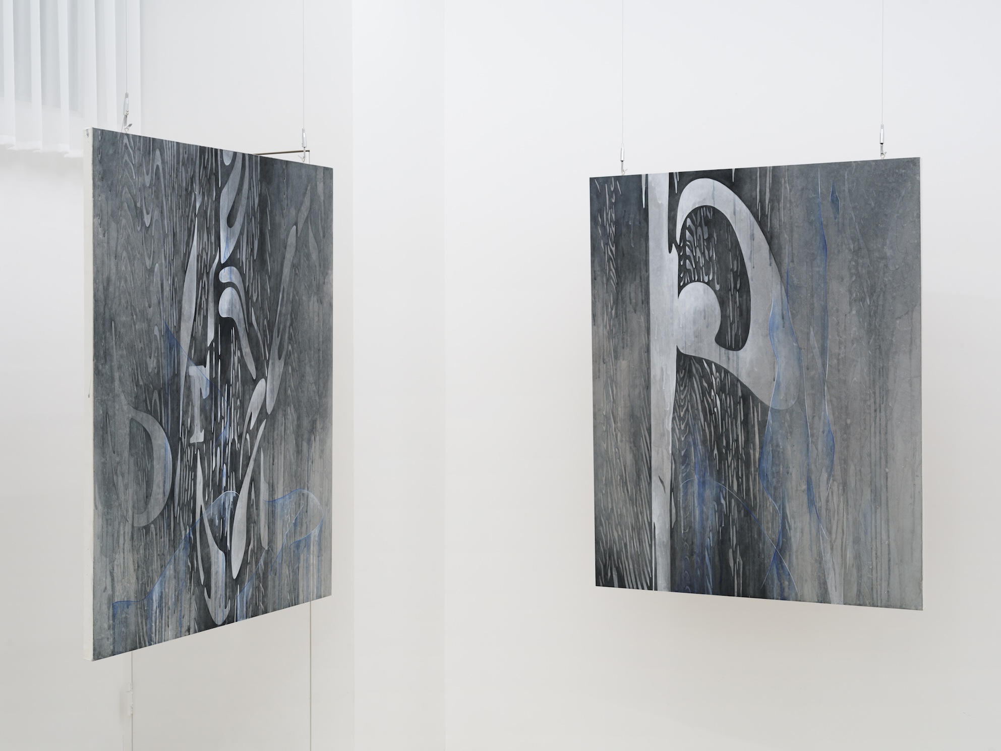 Sun Jaegal(b.1984) studied Visual Communication at the Royal College of Art (MA, London) after earning both her Master’s and Bachelor’s degrees in Graphic Design from Ewha Womans University (Seoul, Korea). As a graphic designer, she experimented with a range of interdisciplinary media, spanning traditional graphic design to video installation. During the COVID-19 pandemic, her practice shifted more decisively toward the artistic domain. Jaegal explores distorted text forms derived from both personal and collected writings, layering them with silhouettes of the female body. Her work process is fueled by an endless search for comfort, capturing, distorting, and reconstructing text materials. In her art, text becomes a "transposed body," replacing the excruciation she experienced growing up as a woman in Korea's patriarchal society. Jaegal primarily works in the medium of traditional Korean painting, complemented by photography and video that document her everyday life.