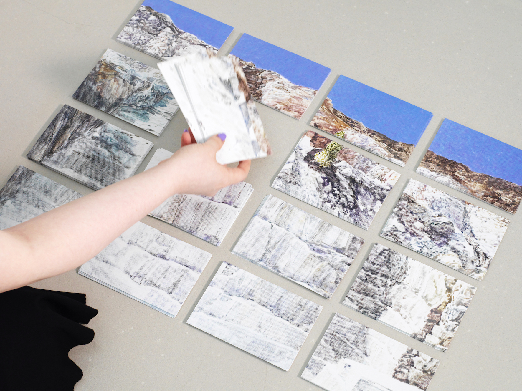<Post-age>라는 이름의 프로젝트로 진행하고 있는, 엽서그림으로 만든 그림엽서입니다. 한 장의 사진 속 이미지를 엽서 크기의 화면 여러 개에 나누어 그린 다음, 촬영과 프린트를 거쳐서 엽서를 만듭니다. 이번 위드아트에서 판매하는 엽서는 세르비아의 한 채석장 풍경을 열여섯 조각의 화면으로 나누어 그려서 만들었습니다. 엽서 이미지에 대한 소개와 그림 조각의 좌표정보, 프로젝트에 대한 QR코드 등을 함께 발송해드릴 계획입니다.