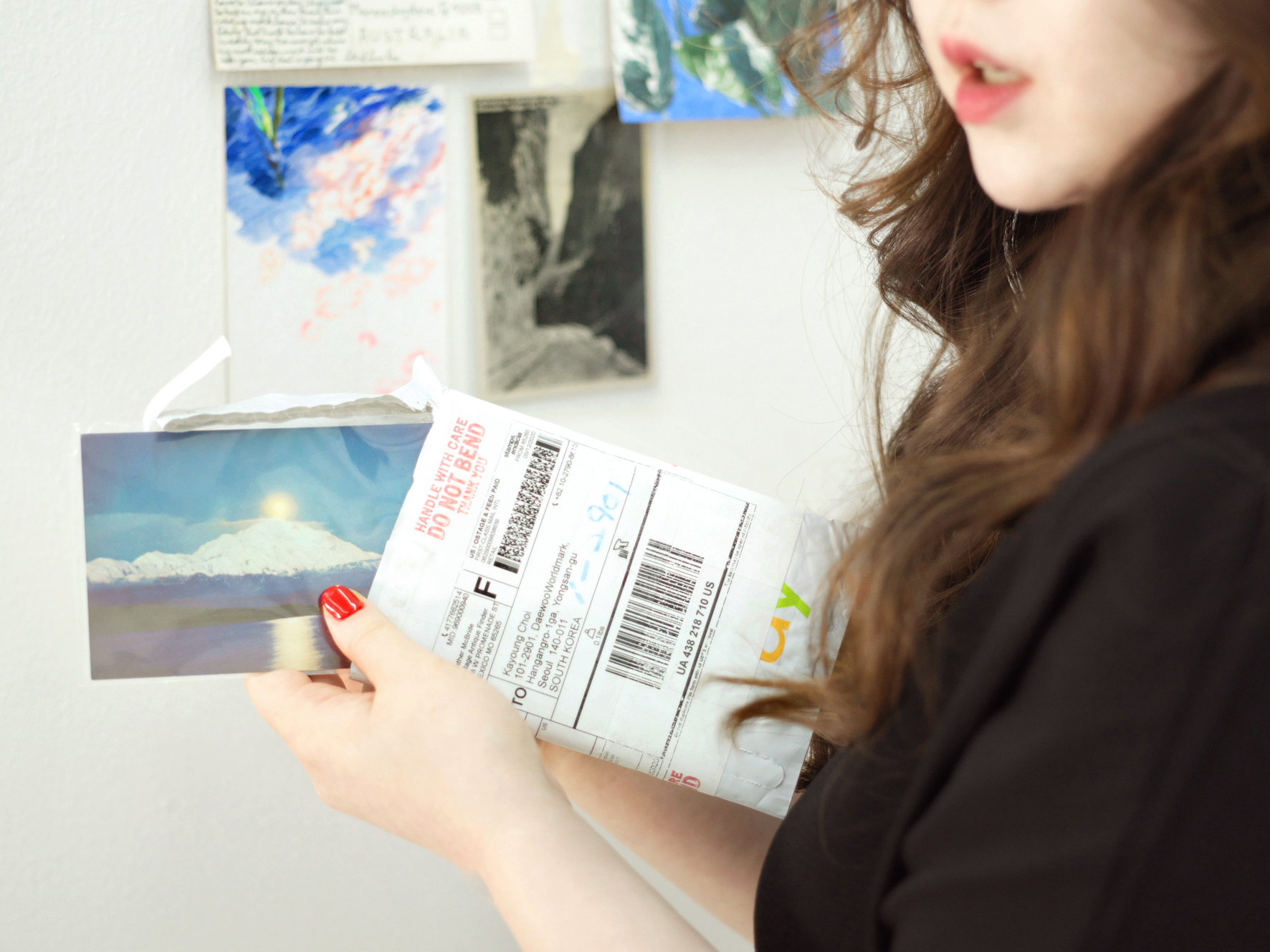 또, 눈 앞에 보이는 장면을 사진과 메시지로 즉각 보낼 수 있는 세상에 익숙해서인지 오히려 기다림과 상상을 부르는 엽서에 관심이 갑니다. 불특정 다수에게 노출하는 SNS 상의 업로드와는 다르게 특정 수신인에게 보내는 이미지와 글이라는 점에서도요. 시각 이미지와 내용을 통해 생각과 마음을 전하는 회화 작업과 닮아있다고 생각합니다.