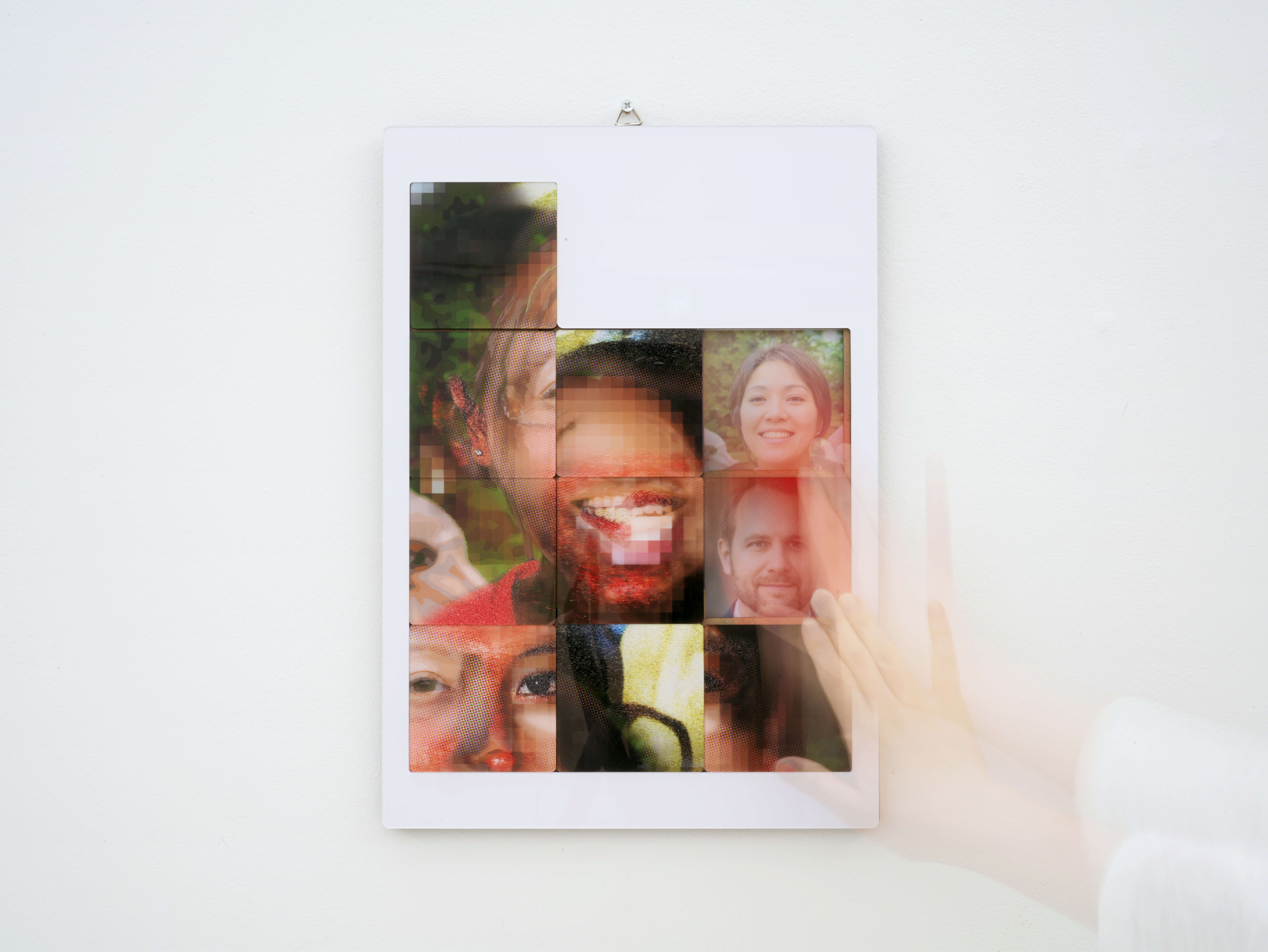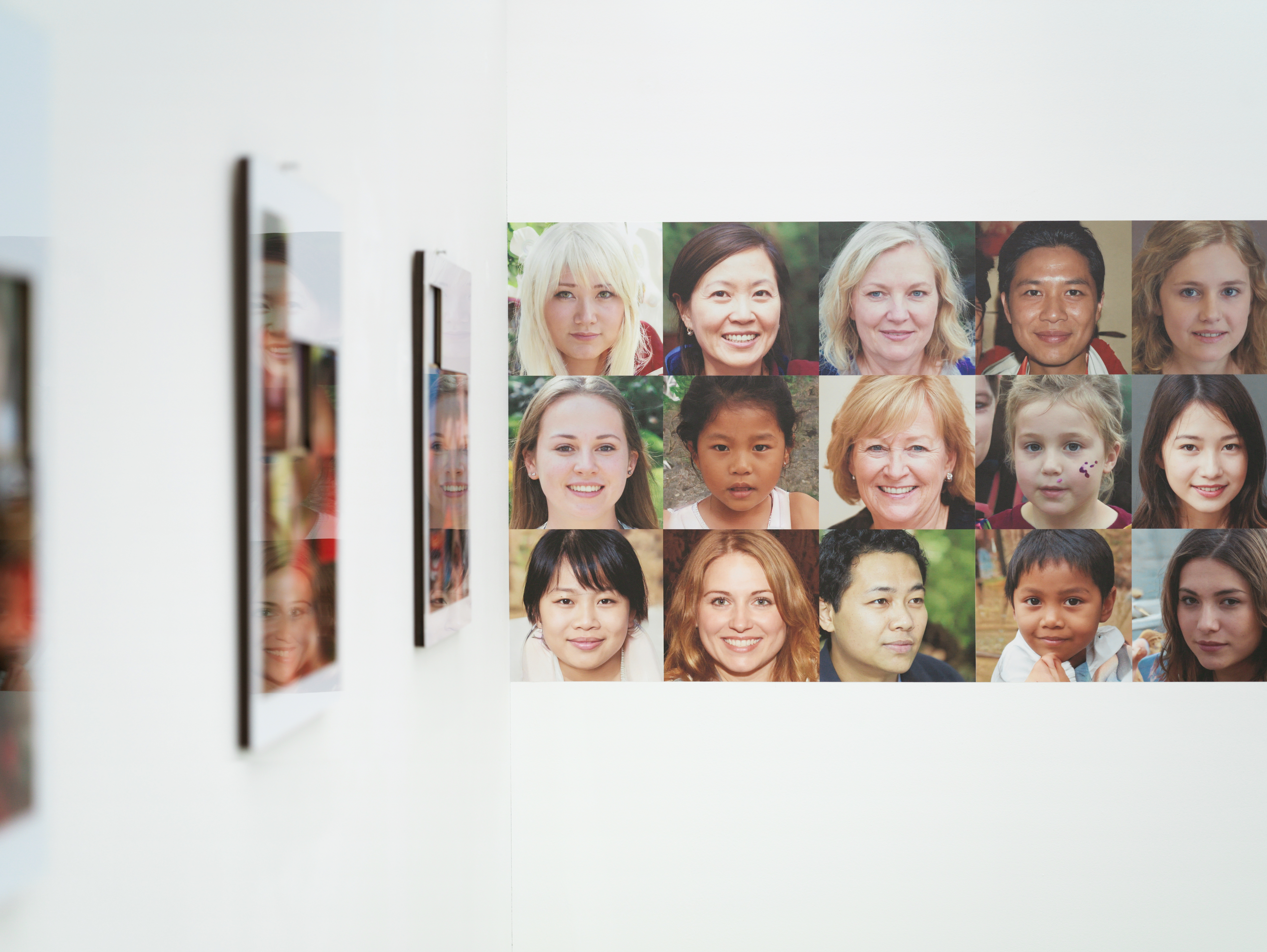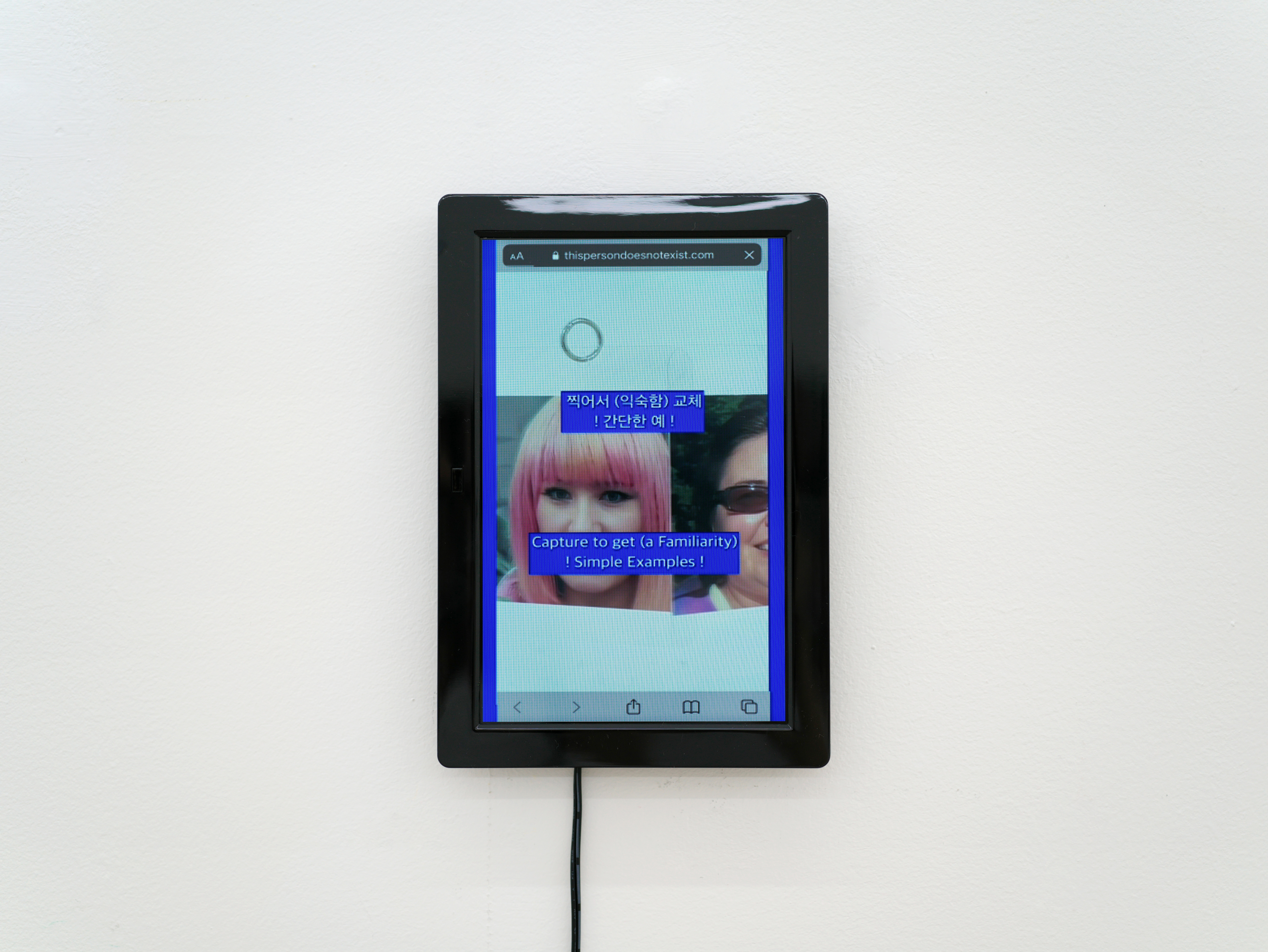 서지수는 그런 변화의 흐름 중 현재 자신이 경험하고 있는 현실과 가상 공간의 관계에 주목한다. 온라인과 오프라인으로 나뉘던 시기는 이제 온 오프의 속성을 넘어 ‘공간, 사회’로서의 물리적 개념까지 함축한 ‘가상 공간’과 ‘현실’의 구분으로 확장되었다. 서지수는 이 개념의 관계를 자신이 경험하는 가장 밀접한 현상으로 표현한다. 그 중 하나는 일상적으로 두 속성의 공간을 넘나들며 겪는 기이한 익숙함과 낯섦에 관한 것인데, 이번 전시 <Face Face>에서 그 기이하고 미묘한 감각을 존재하지 않으나 있을 법한 가상의 얼굴들을 현실에 들여놓음으로써 드러낸다. 전시장에 있는 모든 얼굴, 사람은 그 어디에도 존재하지 않는다. 무작위 합성에 의해 생성되었다고는 믿기지 않을 만큼 익숙하다. 누군가 각 얼굴에 이름을 붙여주었다면 우리는 의심의 여지없이 ‘존재하는 그’를 보고 있는 경험을 했을 것이다. 현실에서 관계한 누군가를 가상공간에서 디지털 이미지로 마주했을 때 알 수 없는 낯섦을 경험한다는 서지수는 이 미묘한 감각의 오차와 균열에 대해 부정하지 않는다. 부정하기보다 오히려 이 균열이야말로 매 순간 두 가지 다른 속성을 구별하고 사유하게 하는 하나의 계기로써 작용할 수 있다고 말한다.