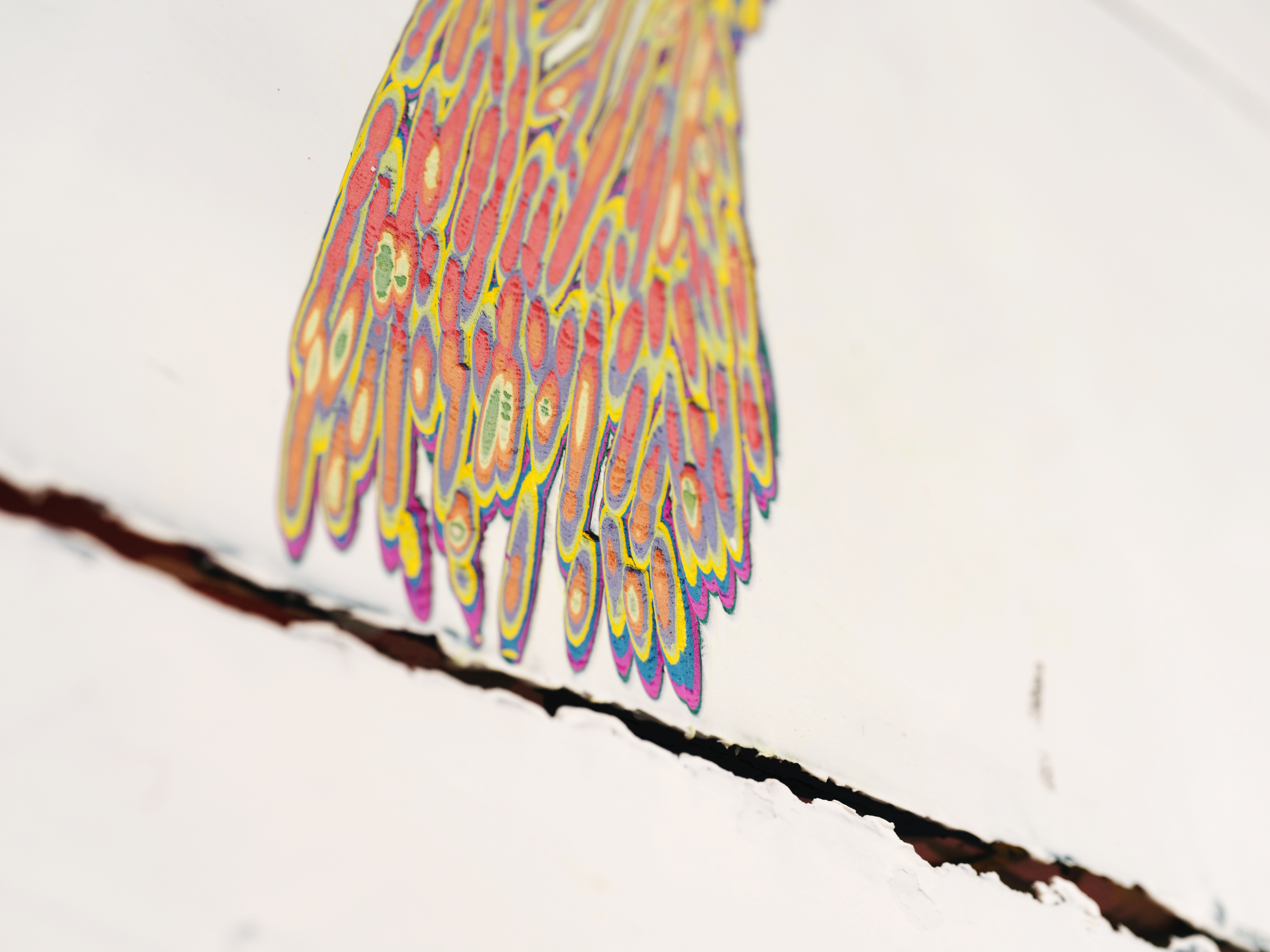 첫 번째 <Strata of Remembrance>는 조각회화 프로젝트이다. 판넬 위에 색상 레이어를 겹겹이 쌓아 올리고 조각하듯이 면을 긁어내어 묻혀있던 색상들을 드러낸다. 이는 할아버지와의 기억을 기반으로 기억 속의 사물 혹은 사건에 대한 이미지를 추상적으로 조각 드로잉한 것이다. 그러므로 조각 드로잉한 색상들은 직접적인 이미지의 형상을 나타내지 않는다. 이는 기억은 실체가 없고 흘러가는 시간 속에서 파편으로만 남는 것을 의미한다. 조각하는 행위로 인해 발생한 다양한 높낮이의 색상을 보며 시각적인 감상 뿐 아니라 촉각적인 일루전을 일으킨다.