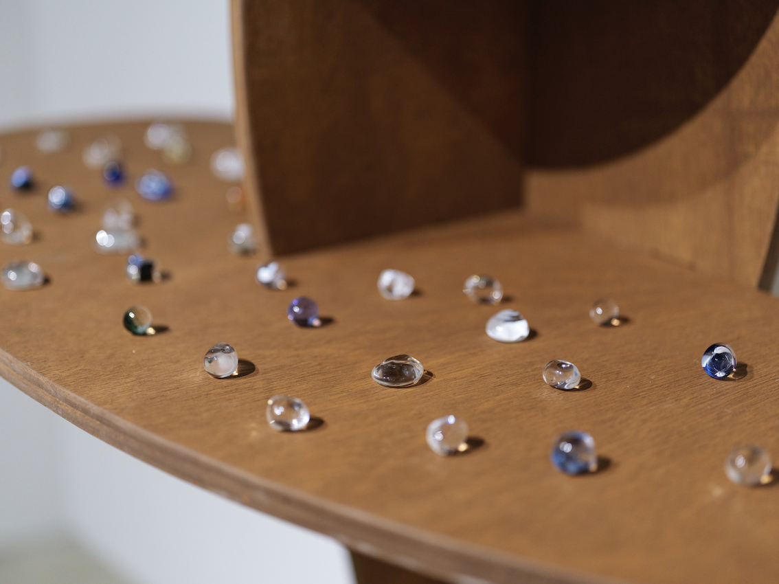 내가 나를 바라볼 때 보이는 것은 투영된 나이지 사유하는 내가 아니다. 사유를 통해 바라보는 내가 진정한 나의 모습이라고 할 수 있다. 무수히 많은 타인의 시선 속에서 쪼개지고 갈라지며 보여지는 나의 모습은 이제 너무 많아서 하나로 합칠 수 없다. 나는 투명한 상태로 산산 조각났다. 내가 아는 나는 이미 흘러간 물결의 잔상들 중 하나로 지나갔다. 물결의 심연에는 내가 모르는 내 존재가 더 크게 존재한다. 나도 모르는 나의 모습을 천천히 들여다보고 싶다. 투명한 조각들로 이루어진 몸이 물의 표면을 지나 물 안에 들어간다. 조각들은 거대한 물 안에서 하나의 덩어리로 다시 합쳐지게 된다. 그들의 투명함이 물과 만나 무한한 전체가 될 수 있다.