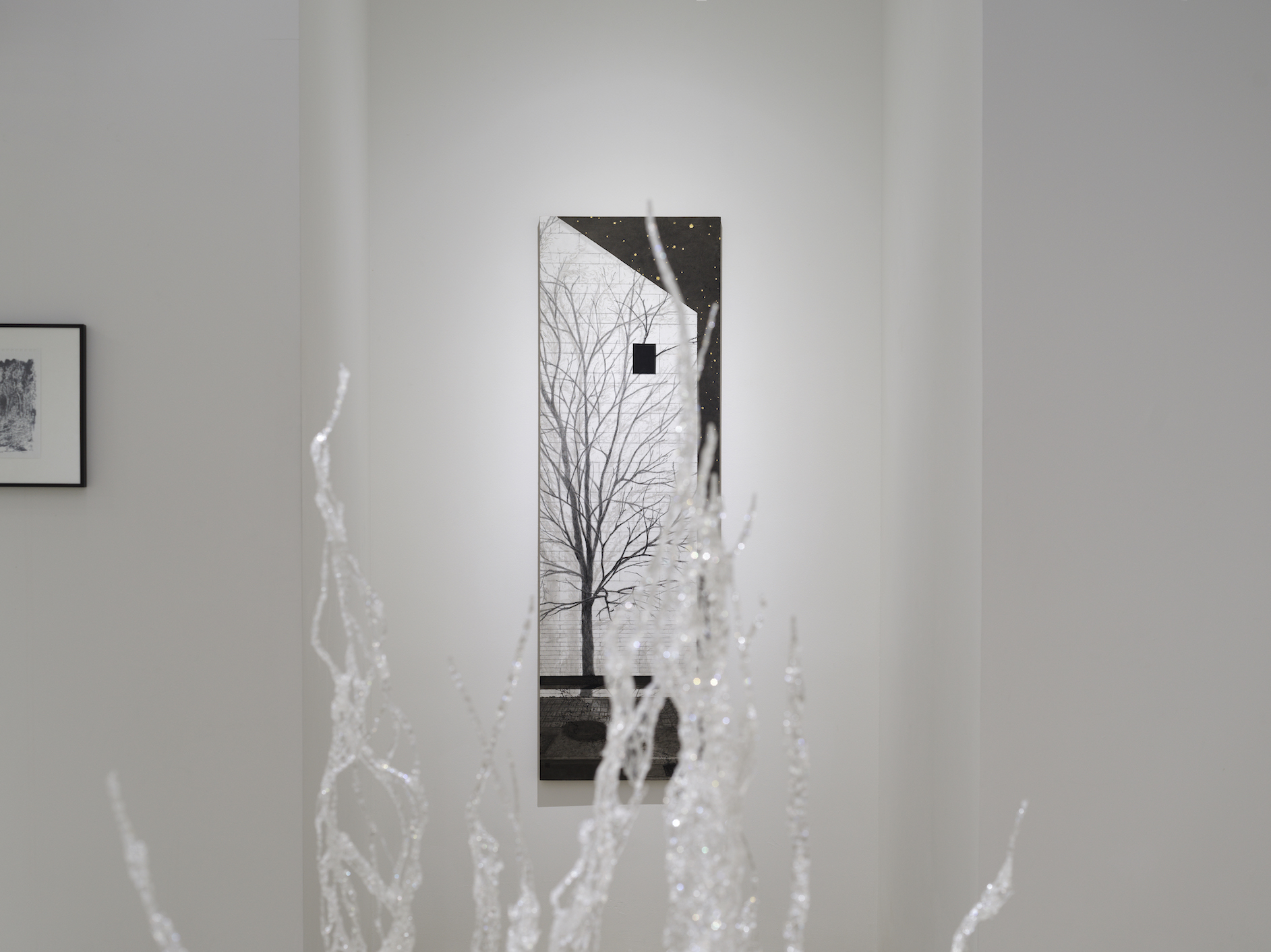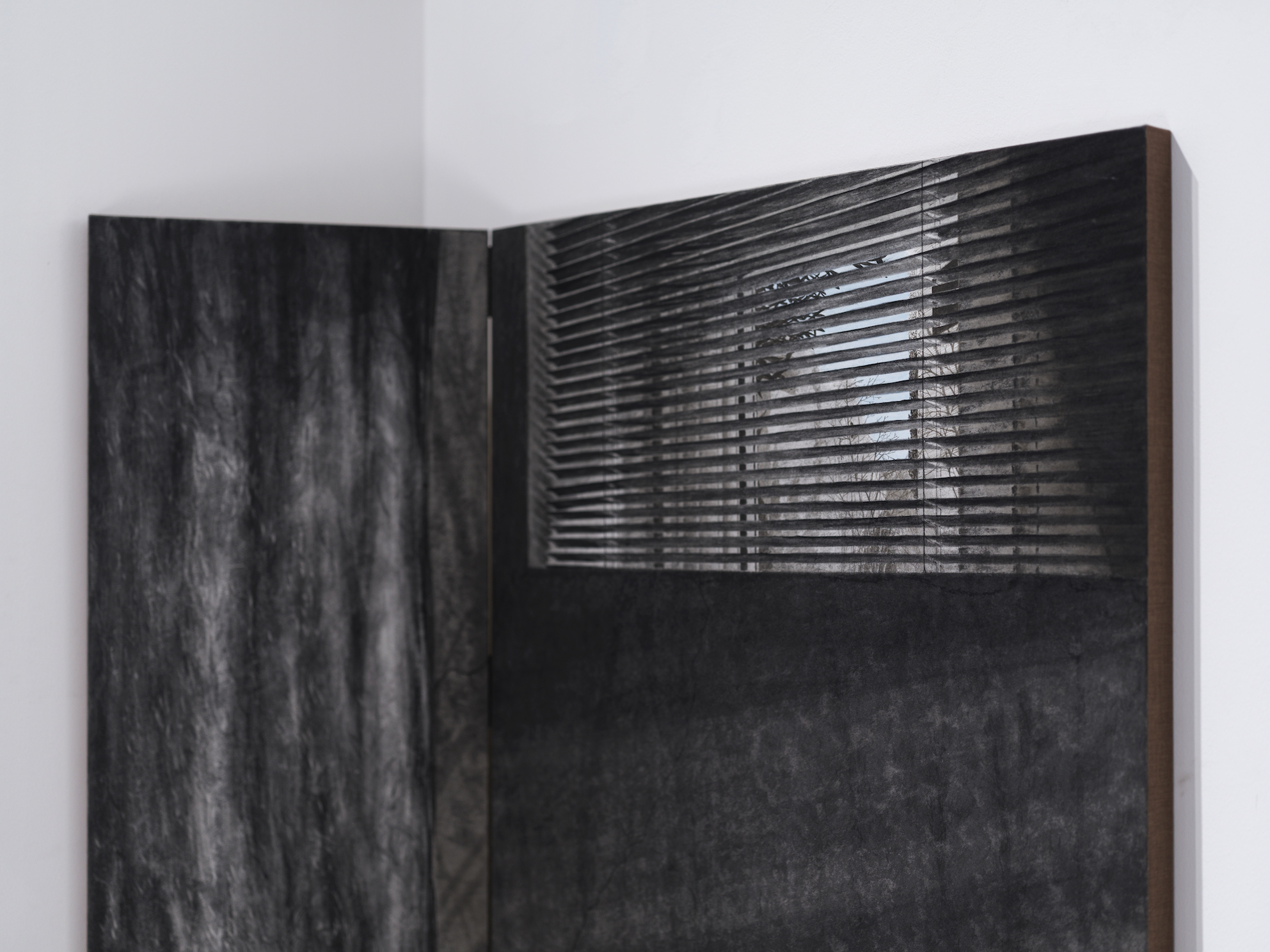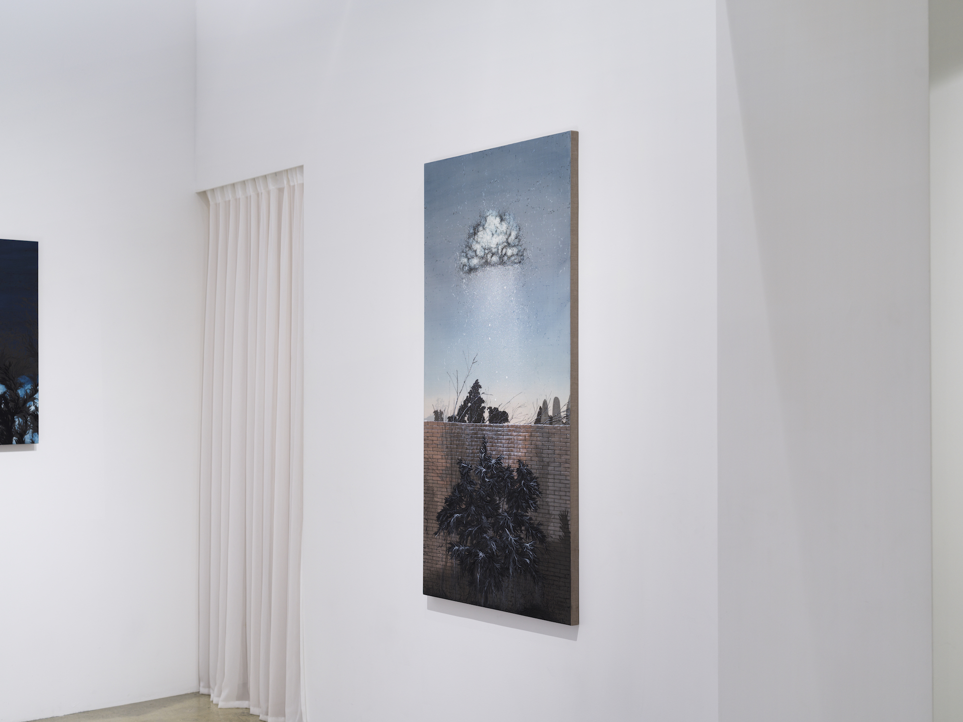 박주영(b.1987)은 일상이 환기되는 순간을 회화적 시공간과 획(劃)의 조형언어, 중의적 의미의 바람(wind/wish)으로 표현한다. 나뭇가지, 잎, 연기, 구름, 그림자 등의 이미지를 빌린 획은 밝음과 어둠의 대비, 무채(無彩)와 유채(有彩)의 차이, 평면과 입체의 전환, 안과 밖의 역설, 실체와 허상의 반전, 시공간의 얽힘 등을 통한 경계의 흐트러트림으로 모순적 질문을 던지곤 한다. 이와 더불어 전통회화기법의 응용, 재료물성의 탐구와 함께 단순한 이미지 이상의 풍성한 이야기를 담고 있다.