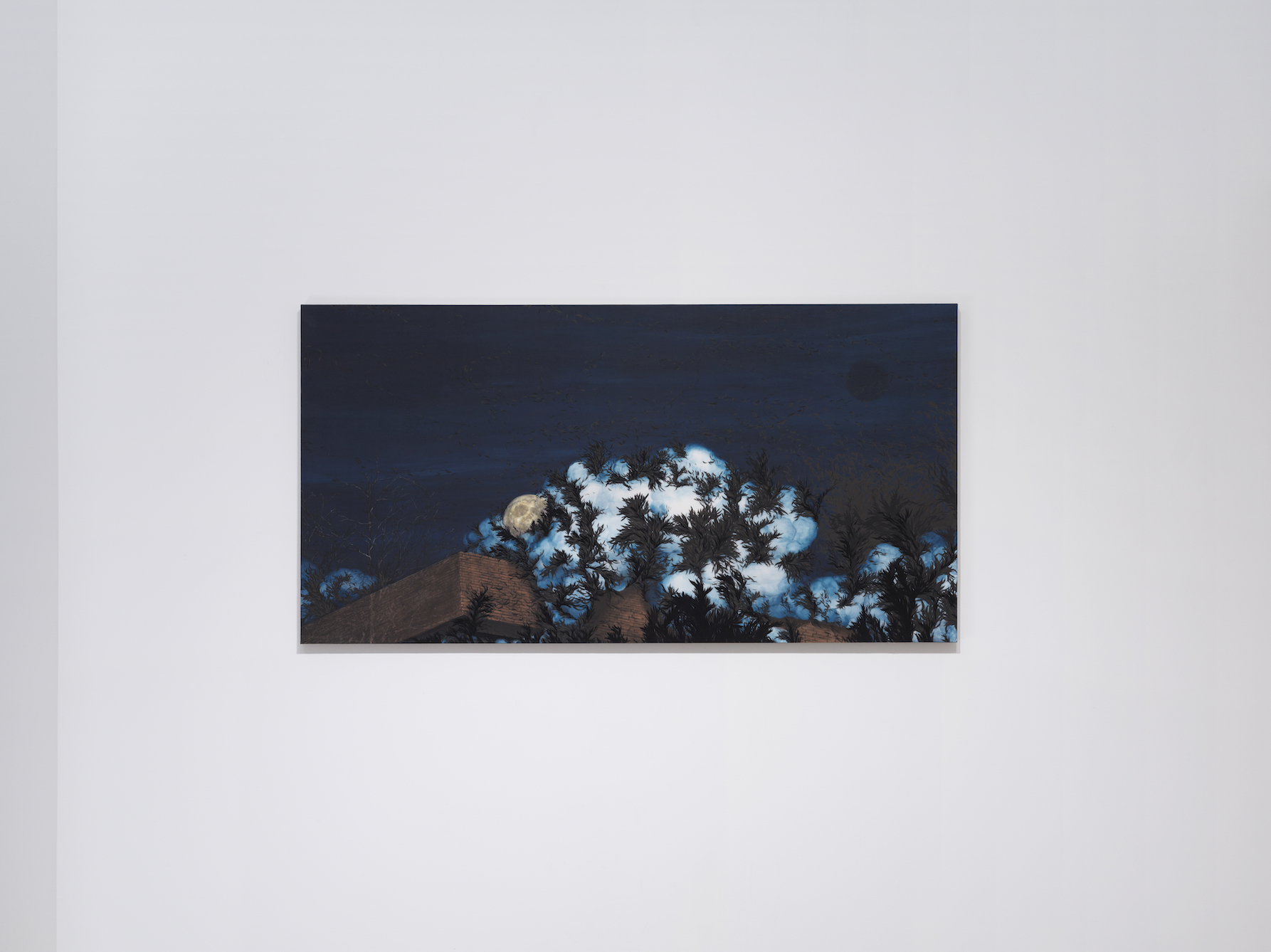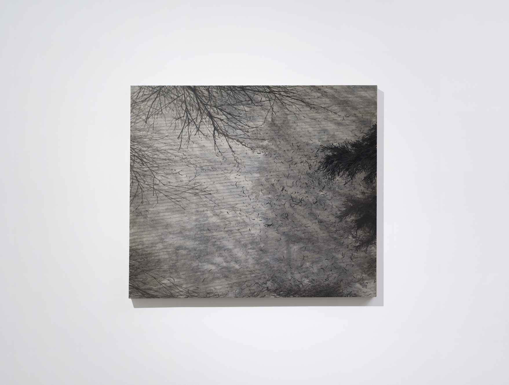 이번 전시<회전하는 그림자>에서는 지금까지의 여정을 돌아보며 잠시 멈추고 머무르는 계기를 갖는다. 앞선 작업들이 삶의 목적을 찾는 태도에서 밖을 향해 있었다면 이번 전시<회전하는 그림자>에서는 오히려 방향도 목적도 갖지 못한 솔직한 내면을 향한다. 시선은 한곳을 향하지 못한 채 하늘과 바닥이 겹치고 날아오르지 못한 획들이 서로 뒤엉키고 때론 응어리져 녹아내린다.
