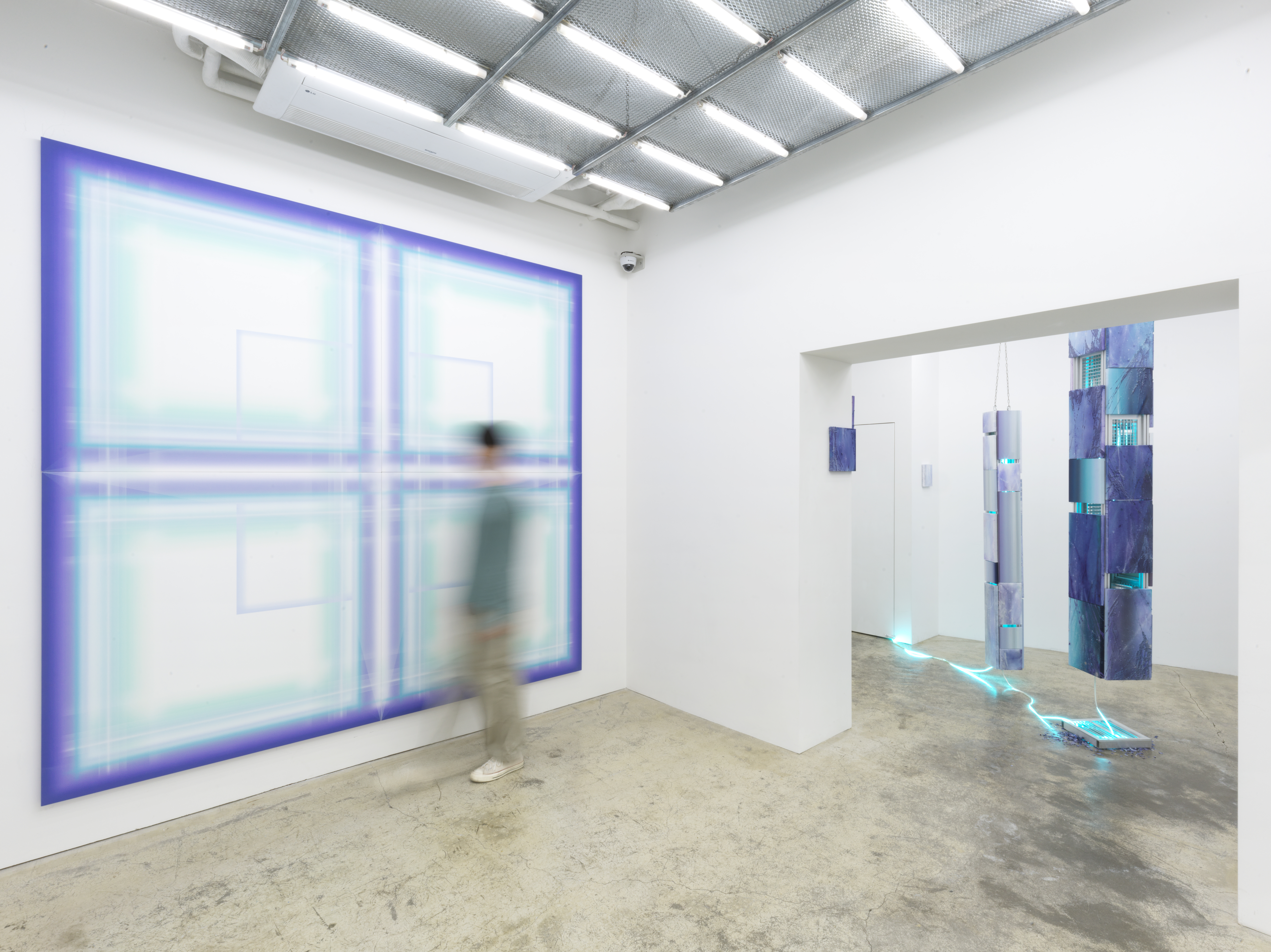 이번 전시 <LUMI-NET>에서 이 결들은 하나의 흔적을 넘어 서로 중첩되고 교차하며 유기적으로 연결되는 모습을 보여준다. 흥미로운 점은 이번 전시에서 확장된 빛, 교차된 선의 모습은 오히려 시간성을 초월한다는 점이다. 실제로 빛은 시간에 따라 흐르지 않는다. 그 자체로 절대적인⏤우주에서 가장 빠른⏤상태로 있을 뿐이다.염기남에게 역시 빛은 이중적인 모습으로 존재한다. 감각되는 빛은 시공간 속에서 물질을 만나 결을 남기지만 새겨진 결, 선들은 다시 축적되고 유기적으로 연결되며 시간을 초월한 순환성을 갖는다. 이 유기적인 순환은 끊임없이 우리와 세계를 관계시키며 미묘한 변화를 이끈다.