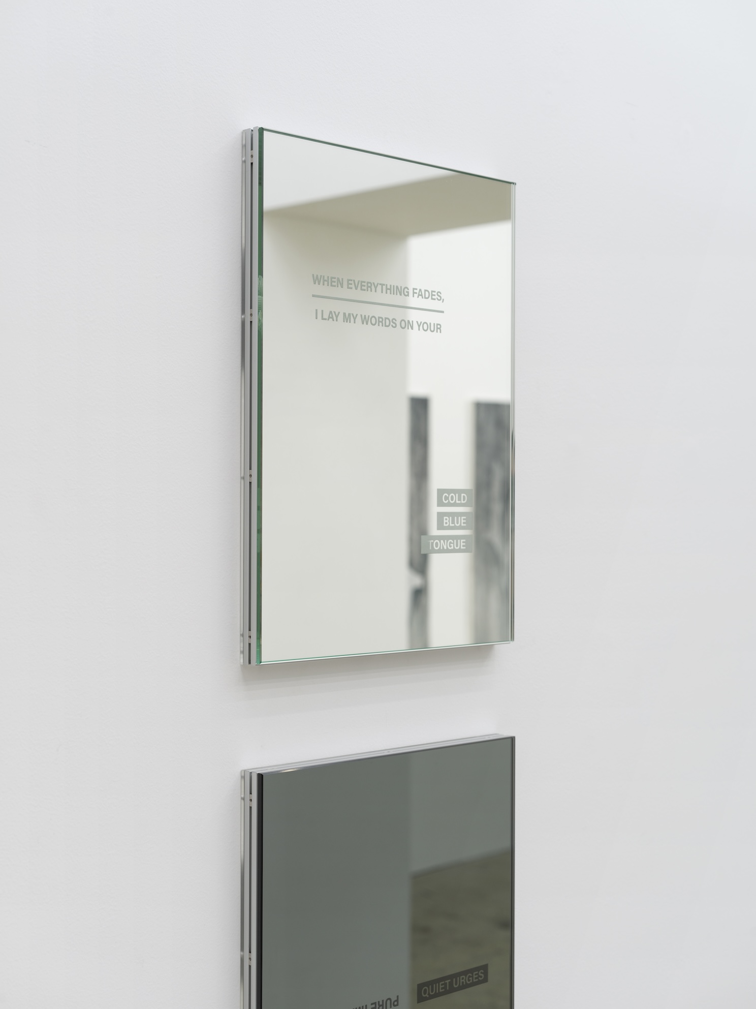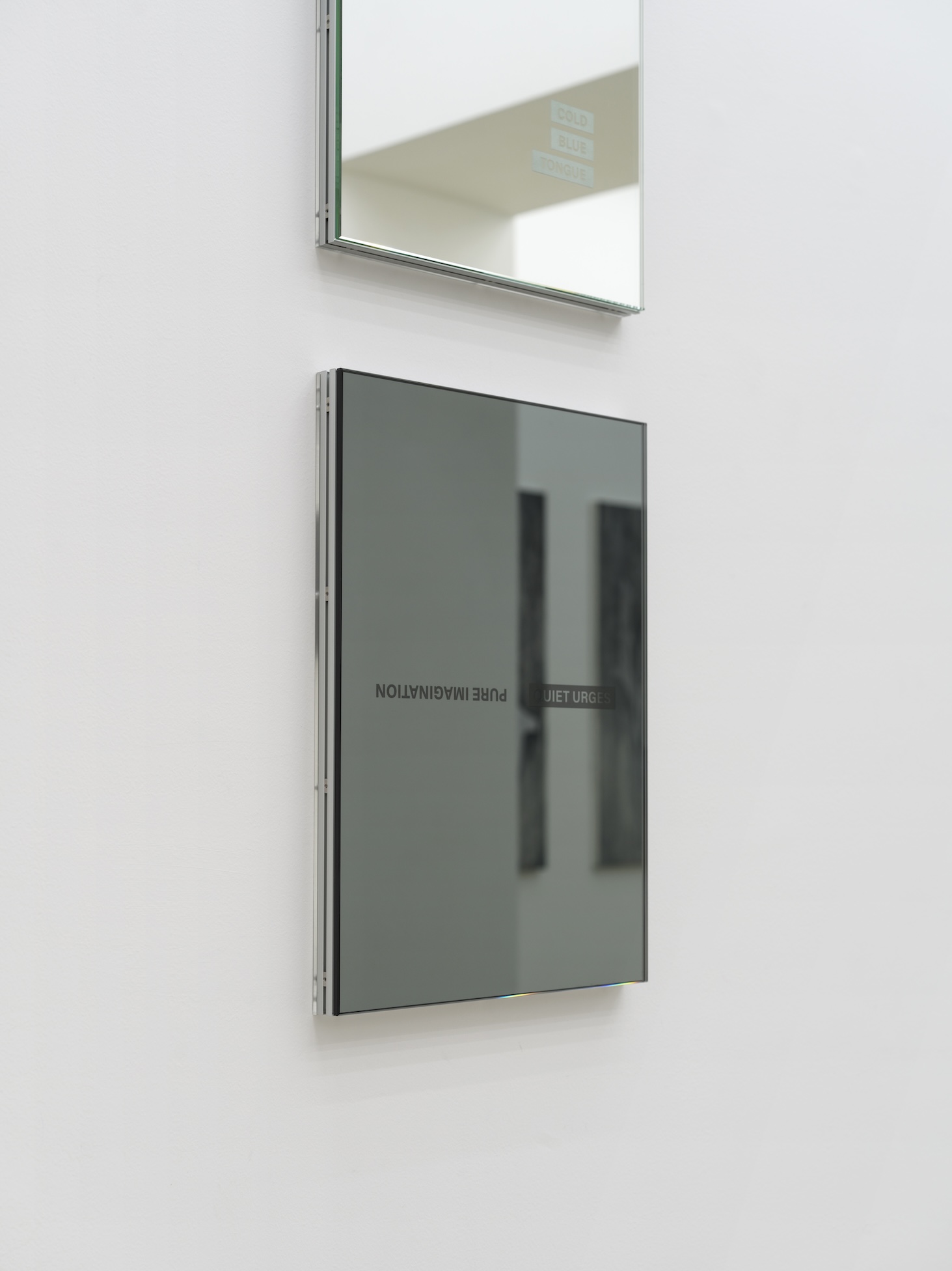 Pure Imagination, Quiet Urges: 순결한 가상, 고요한 충동은 여행 중 발견한 각각 Pure Imagination과 Quiet Urges라는 단어가 적힌 두 개의 열쇠고리로부터 비롯한다. 이 두 개의 수집된 단어들은 일상적으로 채집되는 수많은 단어와 문장들 사이에 떠돌다 마침내 캔버스의 공간으로 이주한다. 본 작업은 대체신체로 상정된 텍스트 조각들 위로 가느다란 여체의 실루엣을 겹쳐 작가의 이 중의 신체를 묘사한다. 캔버스 위로, 처음, ‘대체 신체’와 현실의 몸 - 여성의 몸이 어우러지며 화해한다. | 글_제갈선