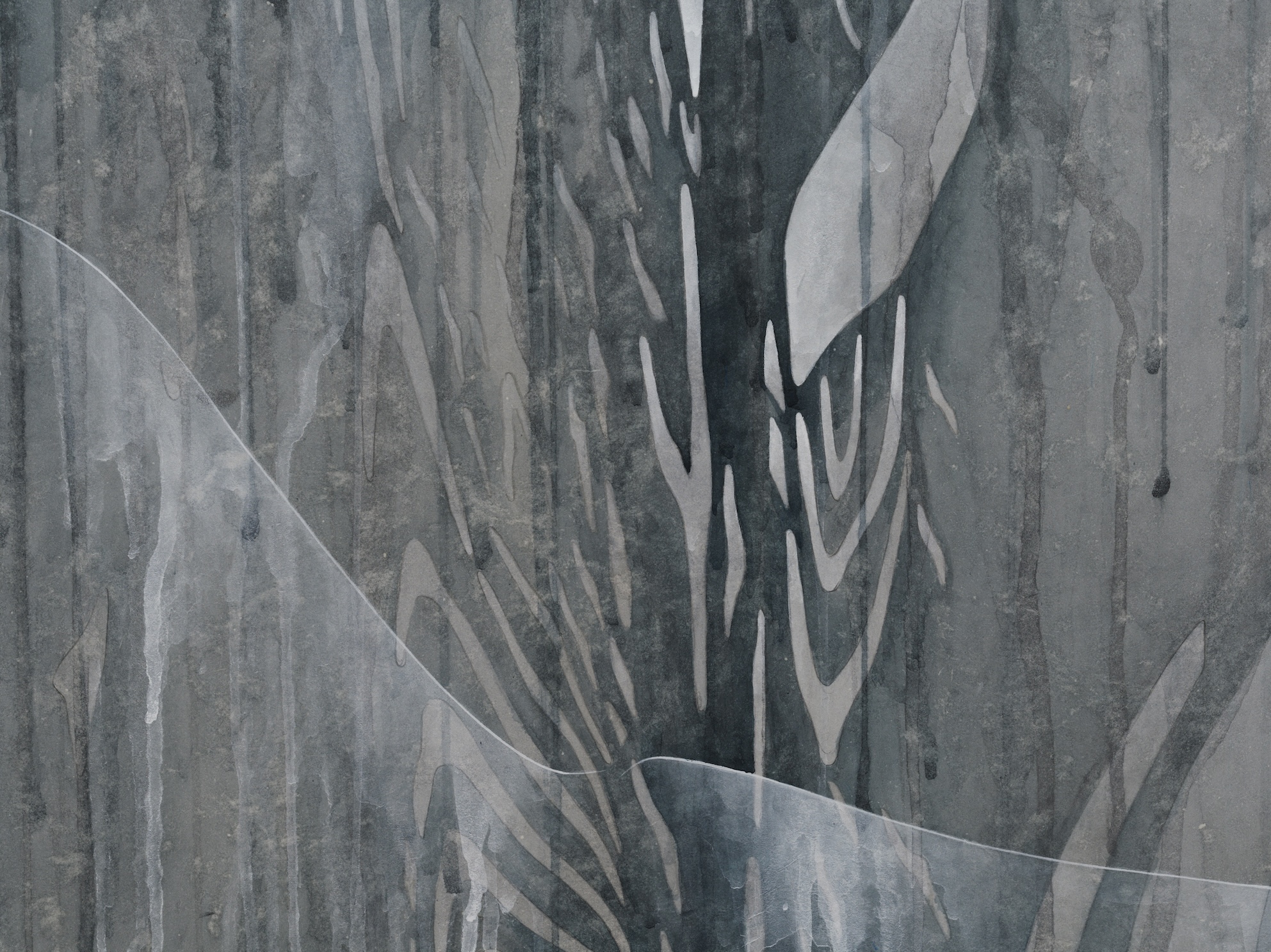 근작에 이르러 나는 부서진 문자의 살점 위로 여체의 실루엣을 겹치기 시작했다. 몸에 대한 강한 부정의 여파는 몸에 대한 강한 집착으로도 드러나왔다. 끊임없이 하지만 비밀스럽게 나의 몸을, 여성의 몸을 들 여다 보고 수집하는 일은 - 포르노를 캡쳐하거나 스스로의 몸을 기록하거나 조각상들의 몸을 찍어 부분 을 잘라두는 일 따위 - 일종의 부끄러운 취미활동이었다. 이 활동들은 대체 신체인 문자로 위로를 얻으면서도 감각의 현실을 버리지 못하고 뒤돌아보는 실재 신체에의 자연스러운 미련에 닿아있다. 현실과 유토피아 그 사이에 있는 낯선 공간인 캔버스 위에서 여성의 실루엣과 문자 신체가 어우러진다. 어쩌면 이것은 너무나 분명히 여성의 몸인 내 현실 신체와 모질게 탈현실화 시켜온 내 개념적 신체 사이의 화해일 것이다.