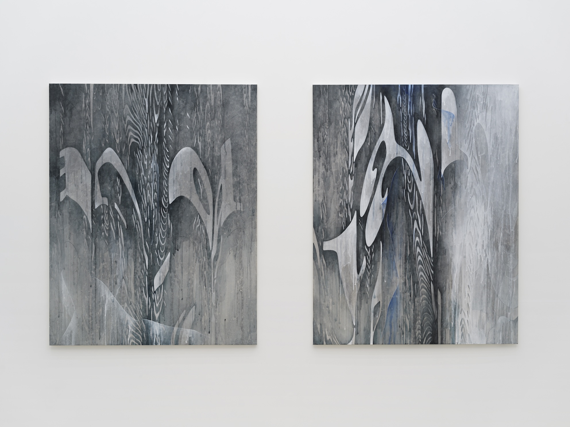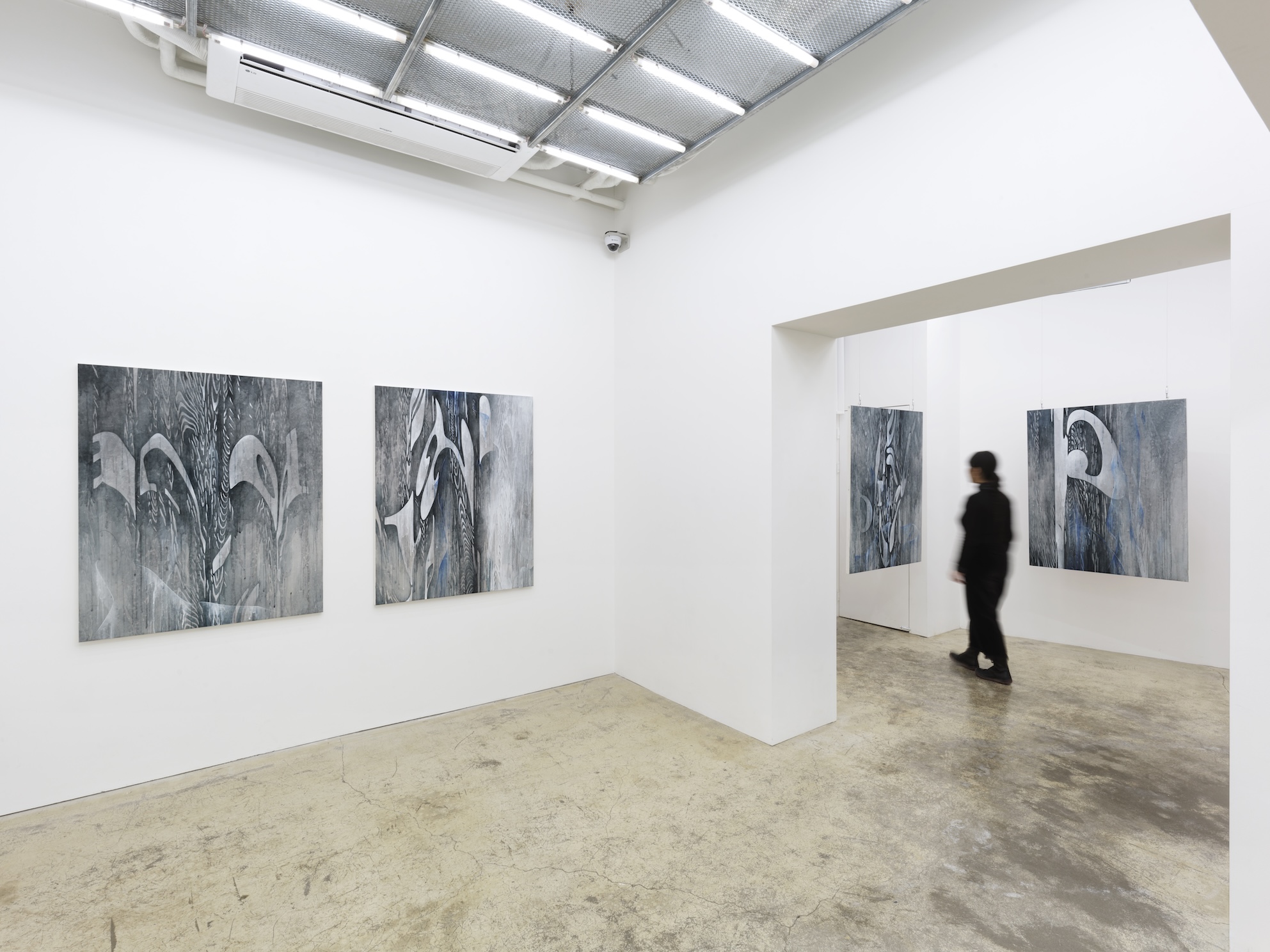 My everyday life is confined by a persistent anxiety toward my body. Growing up in Korea under patriarchal oppression—particularly concerning women’s bodies—I wished from a very young age to renounce my physical self. I made myself as discreet as possible, suppressing the expression of my emotions and desires. When my body began to develop, with masses forming on my chest, thighs, and hips, I felt an urgent need to hide from the unfamiliar attention it drew. My body had suddenly become an object, a "thing," and I ceased to be me. I was transformed into a girl, a female. This awkward and painful process of growing into womanhood, compounded by health conditions, pushed me into an obsession with the abstract and asexual nature of text. For me, text becomes a "transposed body," a vessel through which my living body can be liberated and safely expressed. Fragments of this distorted textual body exist in an alternative space—on canvas—where they are caressed by repetitive brushstrokes.